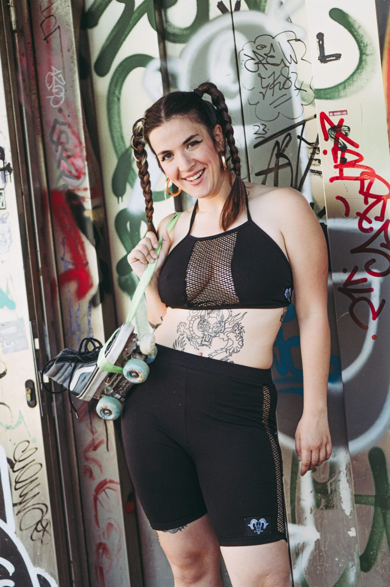 Confeccionat amb tela de punt elàstic negre i rejilla.